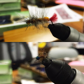 On Sunday, my boyfriend and I went to Sportsman's Warehouse to get some fly tying material. I am starting to build up my selection of different sized hooks, beads, thread, and feathers since he gave me a vice for Christmas. Last night I was able learned how to tye a Wooly Bugger, Midge, and some San Juan Worms. I think my favorite was the Wooly Bugger because wrapping the single feather from a Ewing Grizzly Bugger patch around the hook made it all fluffy reminding me of a porcupine.